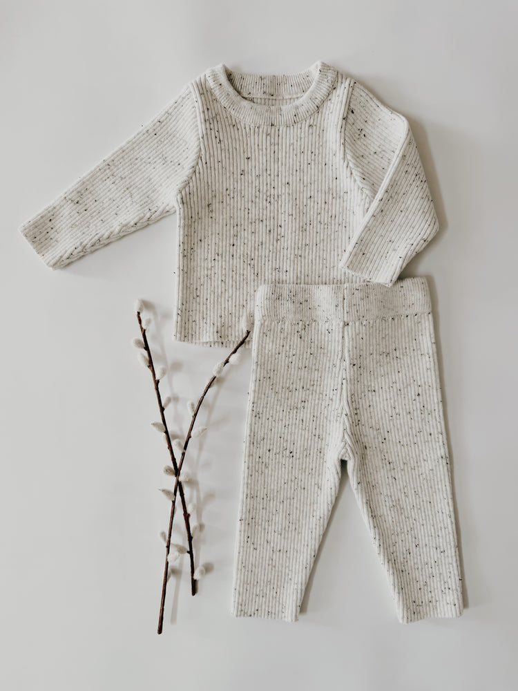 This Set brings cozy fun to your little one’s wardrobe with its soft cotton knit fabric. The cute flecked pattern adds a playful twist, while gentle stretch keeps your infant comfy and ready to explore. Perfect for everyday adventures or snuggly downtime, this set hugs your baby in stylish comfort.