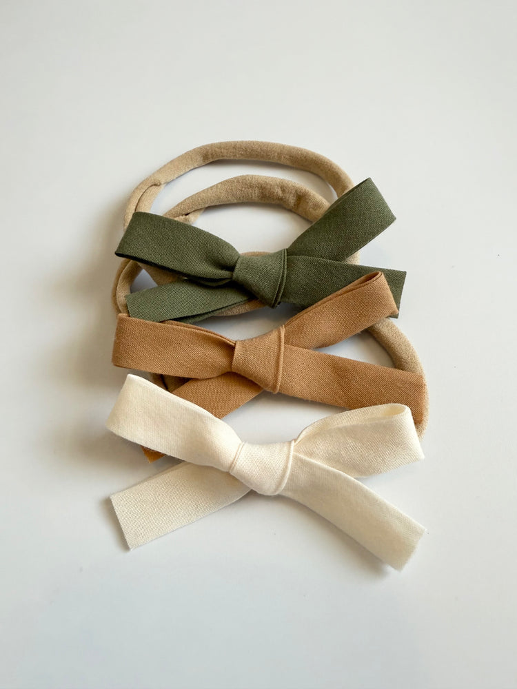 Beautiful bows adorn a soft nylon band. Mix and match with your favorite outfits with these adorable headbands.