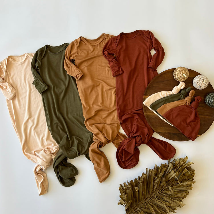 This gown and hat, in Olive, is perfect for cozy lounging. Let your littlest relax in comfort with this ultra-soft and lightweight loungewear. Luscious in feel and breathable in design, this gown is sure to become your go-to for lazy days at home.