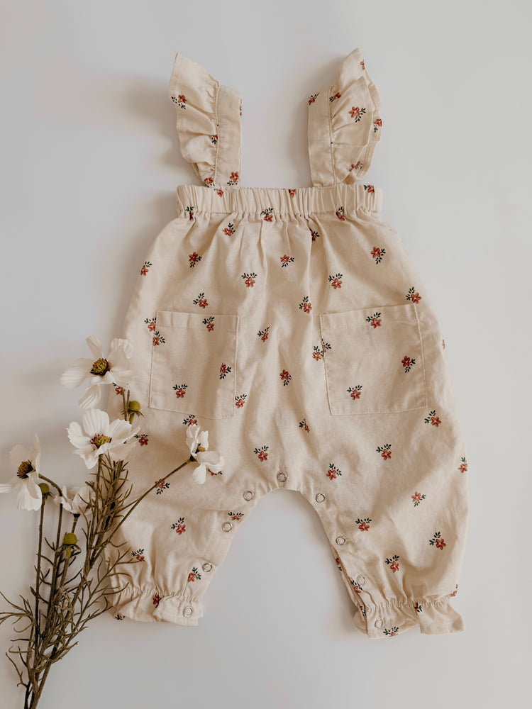 Crafted with delicate details, this Della Overall Romper is perfect for your little one. The pocket and ruffles add a charming touch. Elevate their style with this sweet and practical romper.