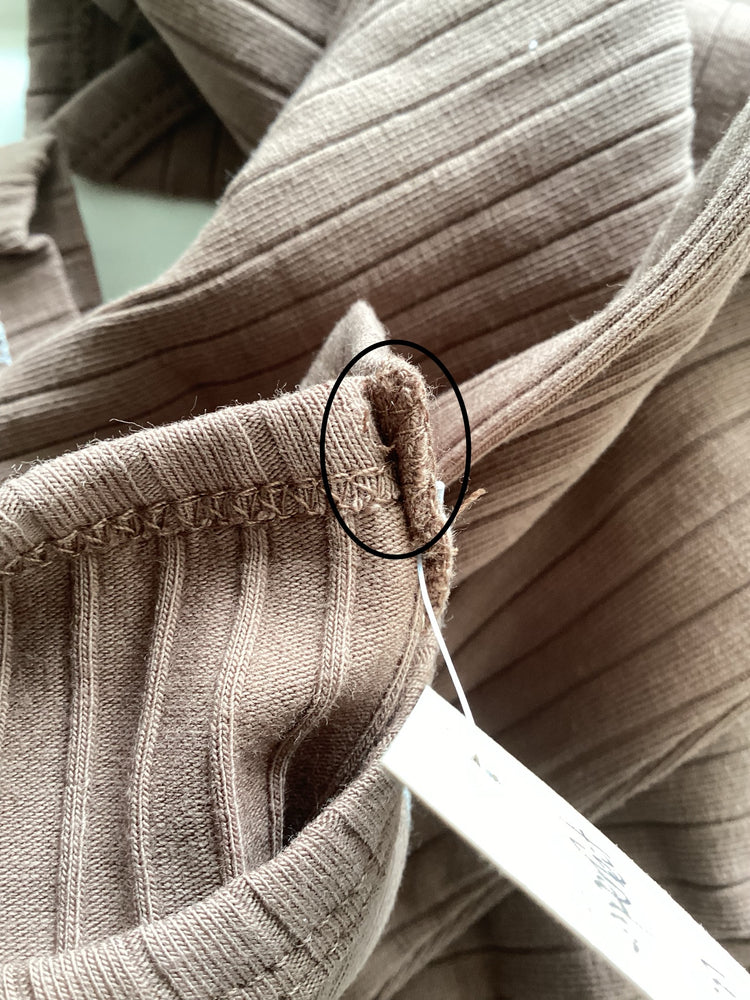 Imperfect stitching on neckline.